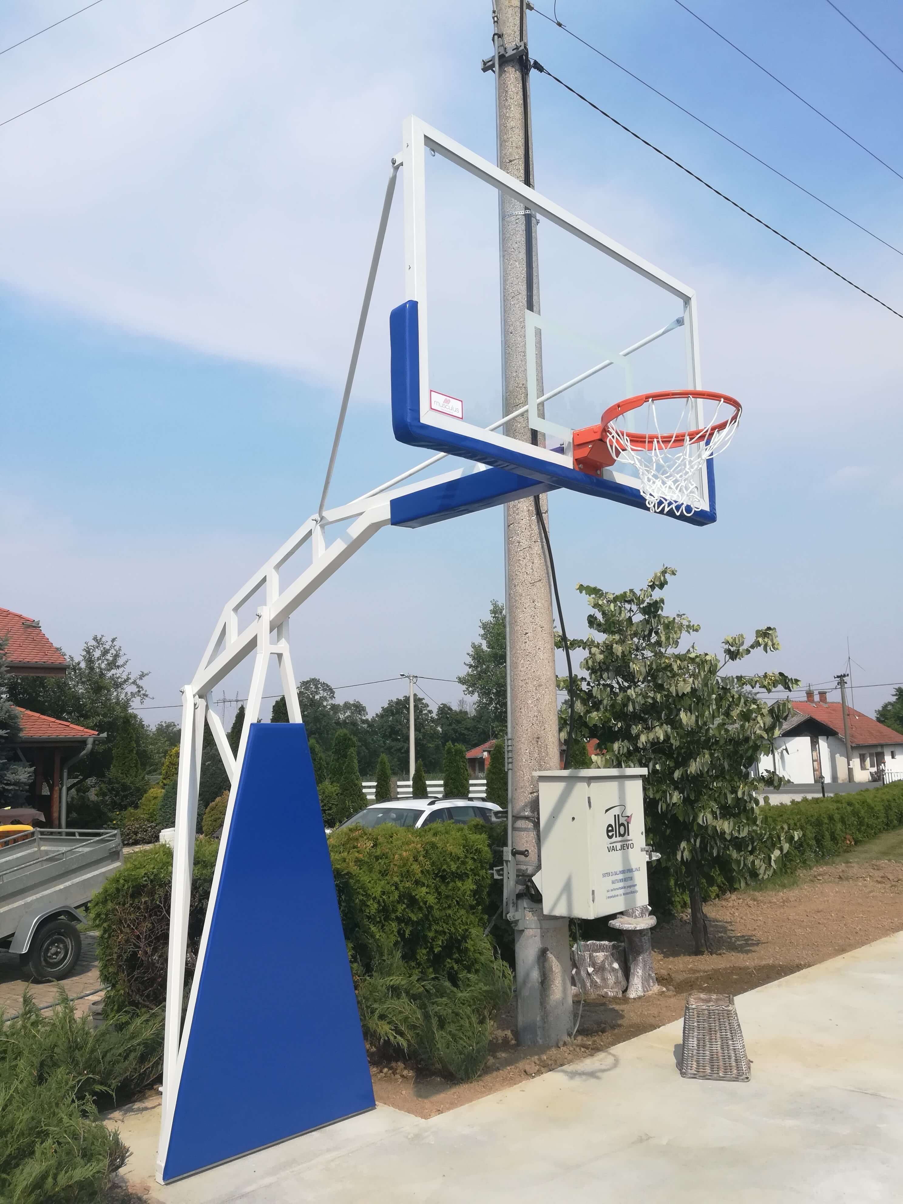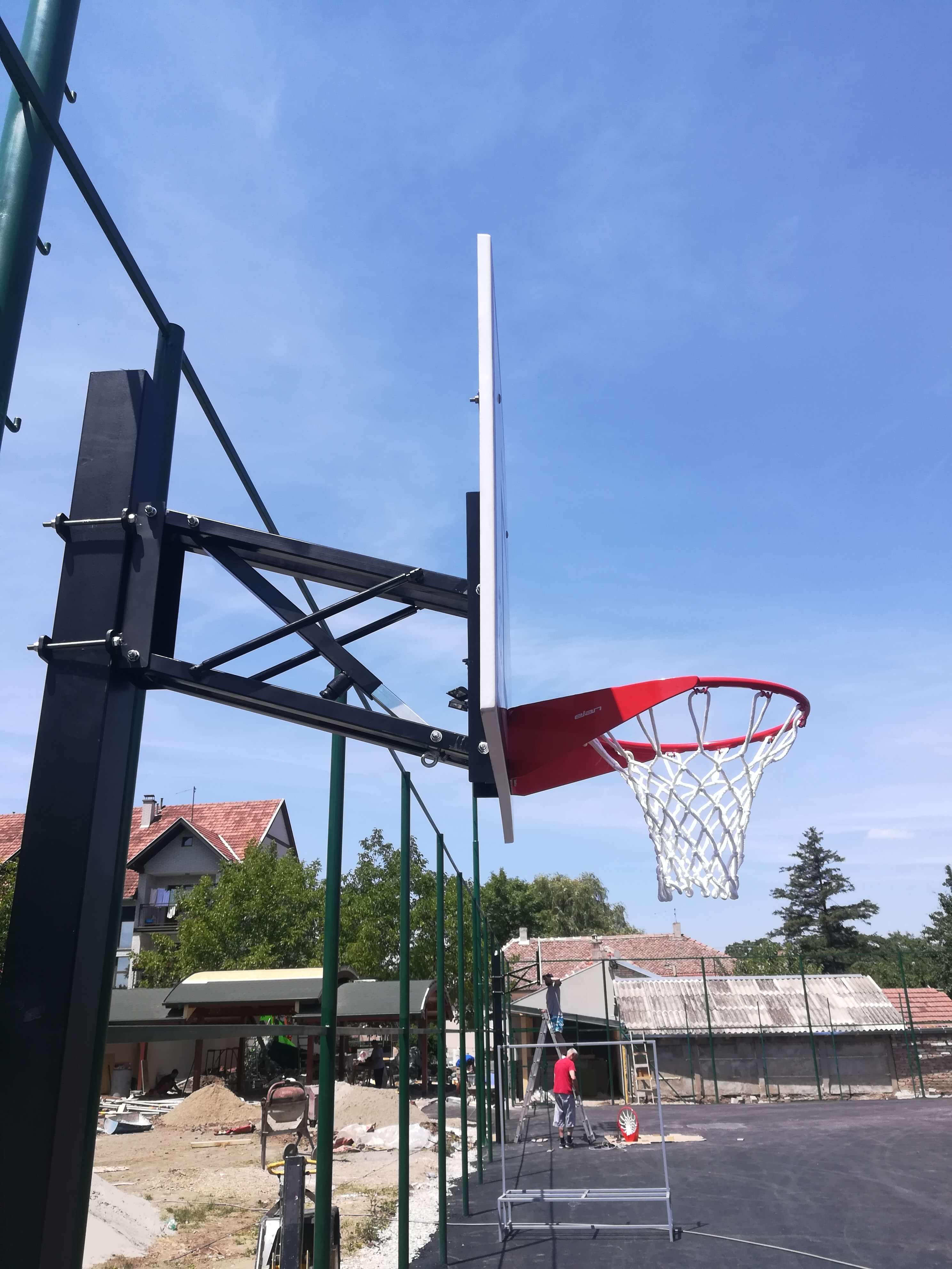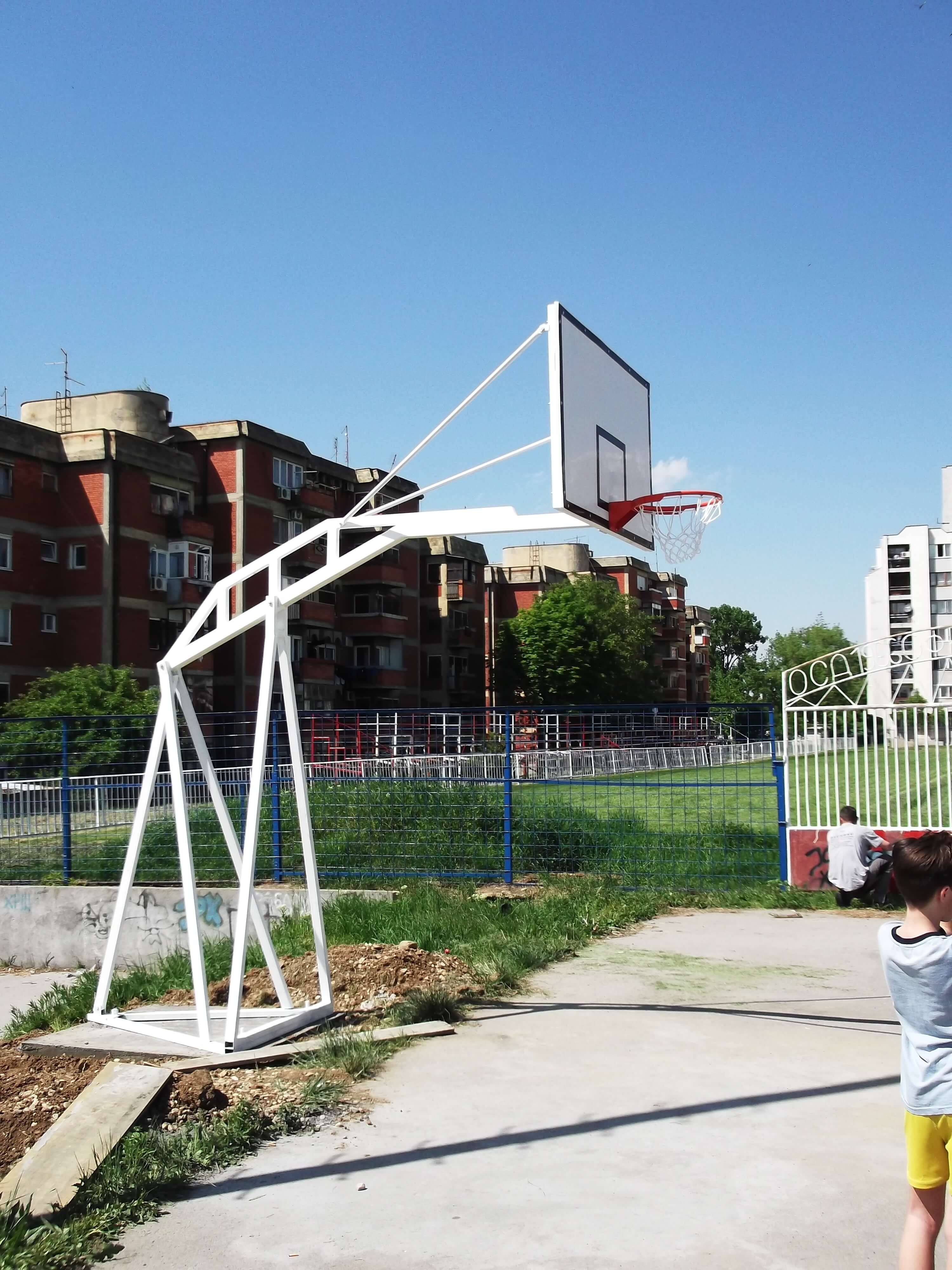 Školska, spoljna, netapacirana, fiksna košarkaška konstrukcija.