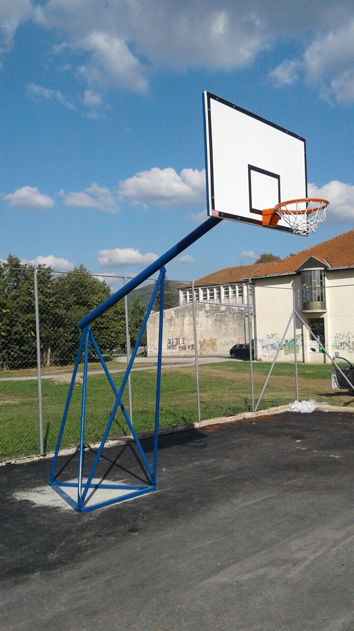 Školska, spoljna, fiksna košarkaška konstrukcija.